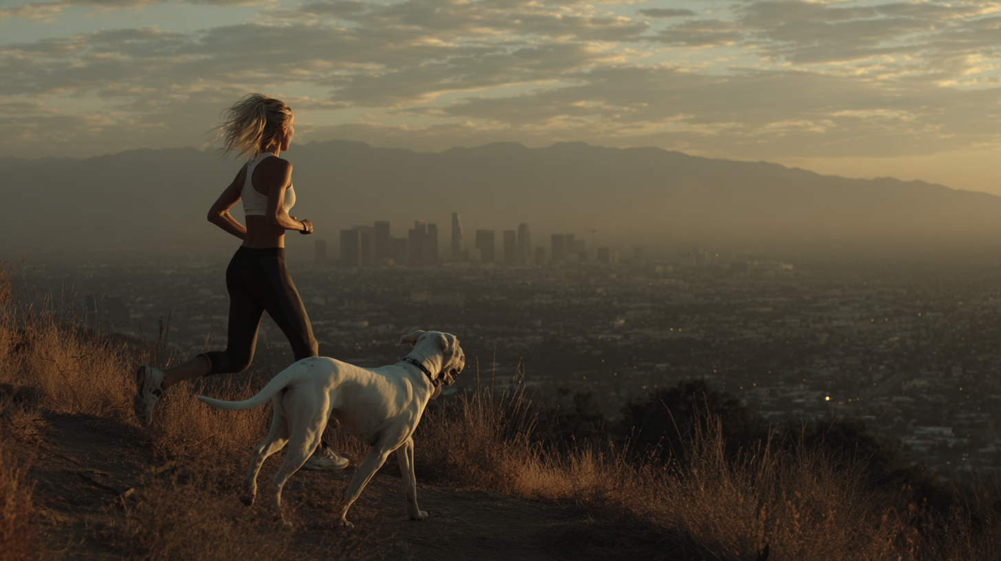 As they look out the apartment window, we see a dog built for open skies and endless trails.