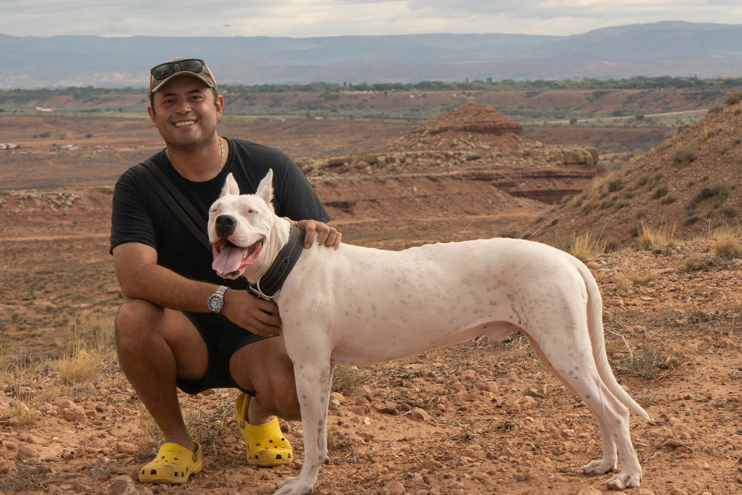 A local trainer introduced us to two abandoned white working dogs, Roqui and Lacy. Even though they were skin and bones, their spirit was undeniable. Roqui crawled right up to me, tail wagging, as if we’d known each other forever. I left Utah a week later, but he stayed on my mind for months.
